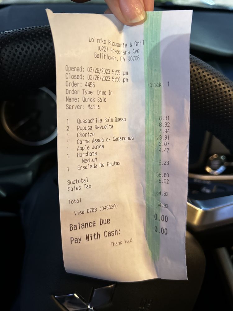 Lo'roko Pupuseria & Grill offers a unique blend of Salvadoran and New American cuisine, with a range of options for all dietary preferences. Located in Bellflower, CA, this Latinx-owned restaurant provides a warm and welcoming atmosphere, with excellent service from attentive staff members. The menu features traditional Salvadoran dishes like pupusas, tamales, and hearty breakfast options. Customers rave about the delicious flavors of the chicharrones, pastelitos, and horchata drinks. The attentive service from servers like Joceline, Roxanna, and Eykel adds to the overall dining experience. With options for vegan and vegetarian guests, Lo'roko Pupuseria & Grill caters to a diverse range of tastes. Whether you're looking for a casual meal or a special occasion, this restaurant has something for everyone.